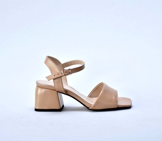 Босоніжки ніжно- рожевого кольору на підборах з натуральної шкіри