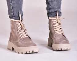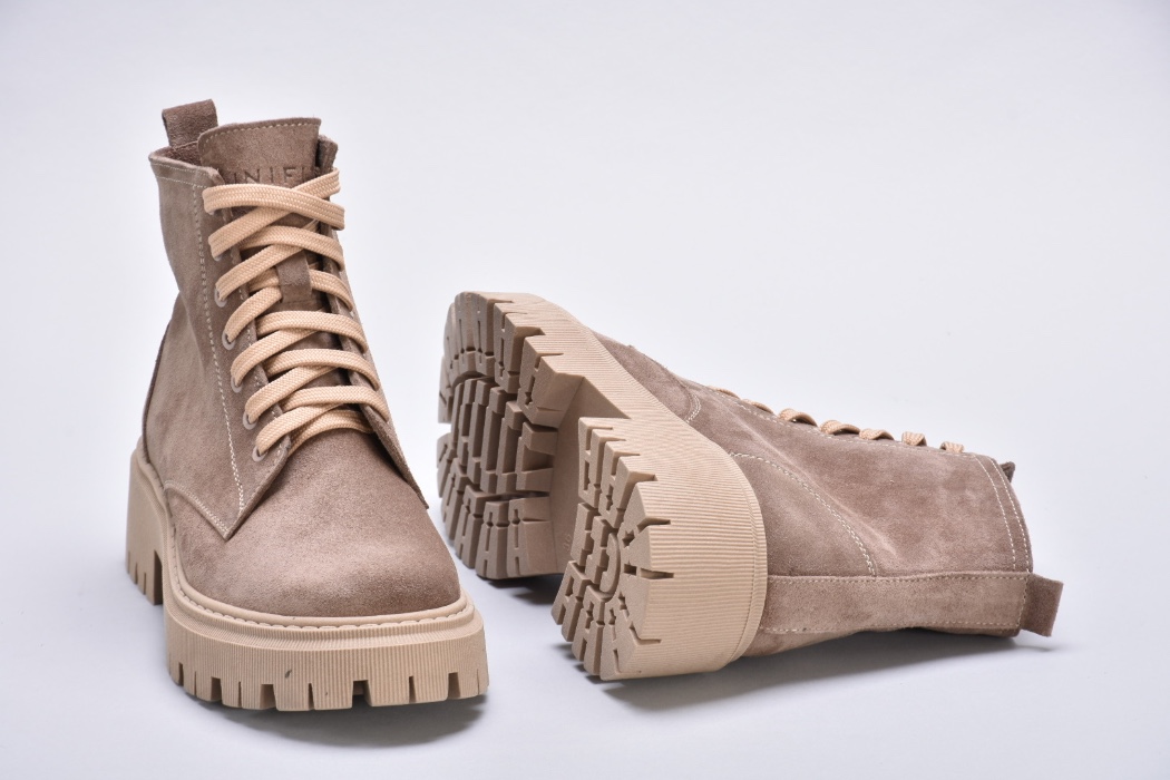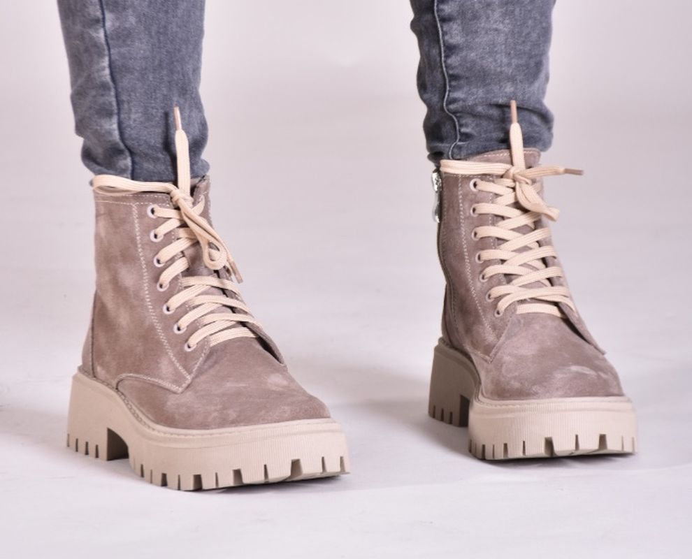 Мінімалістичний дизайн та базовий колір натуральної замші дарує черевикам властивість, як універсальність, тому ви можете поєднувати їх з одягом різних стилів – від гранжу до класики.