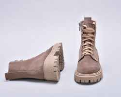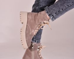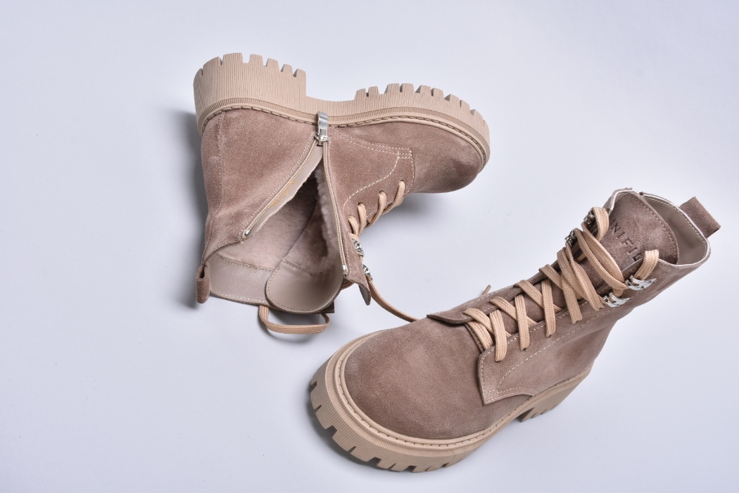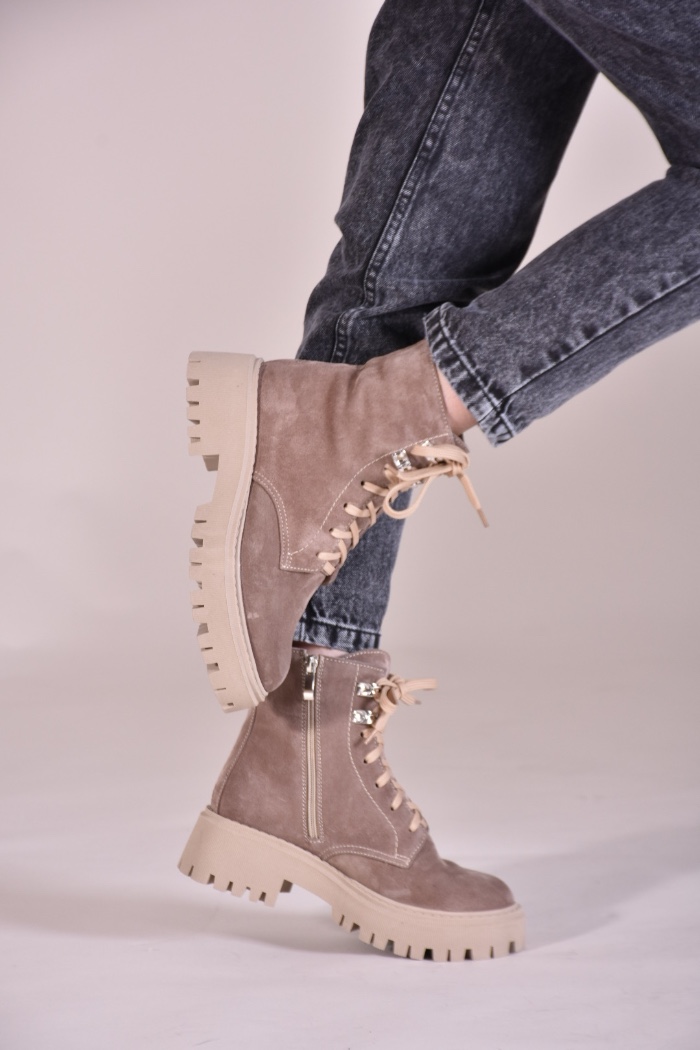 Мінімалістичний дизайн та базовий колір натуральної замші дарує черевикам властивість, як універсальність, тому ви можете поєднувати їх з одягом різних стилів – від гранжу до класики.
