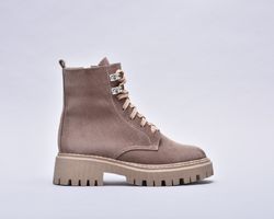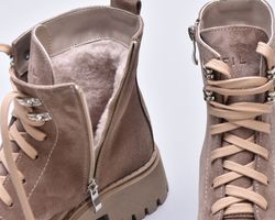 Зимові темно бежеві черевики з натуральної замші.