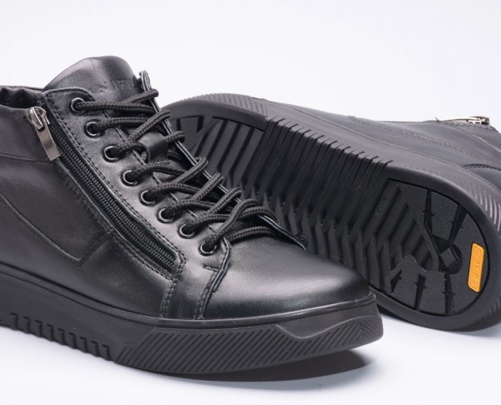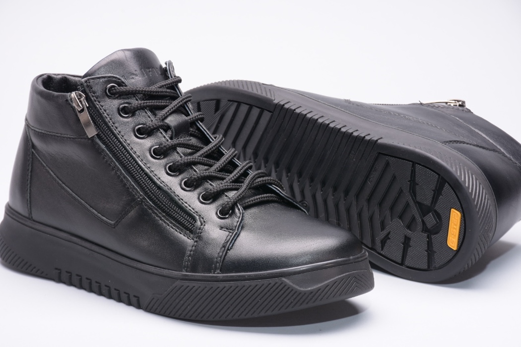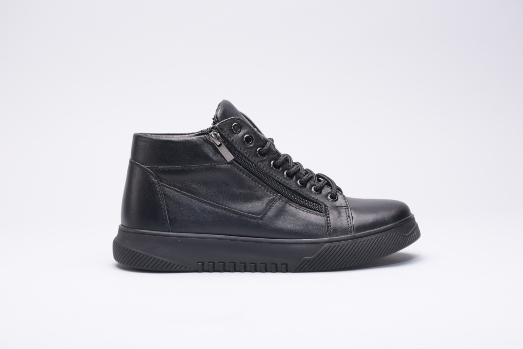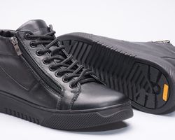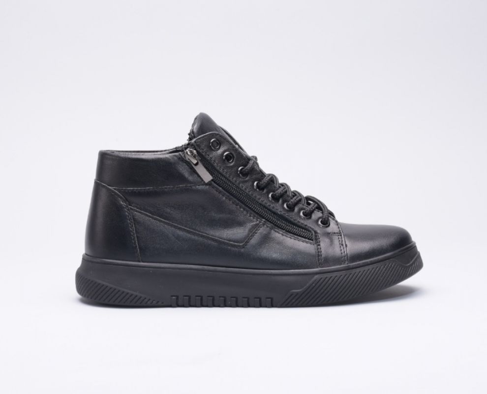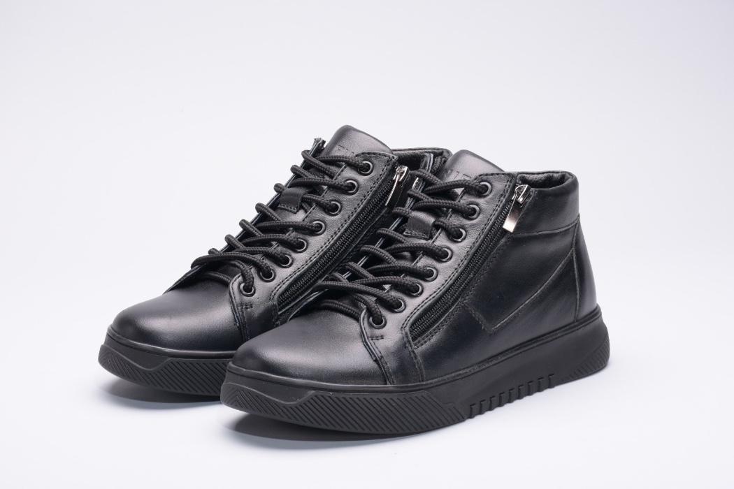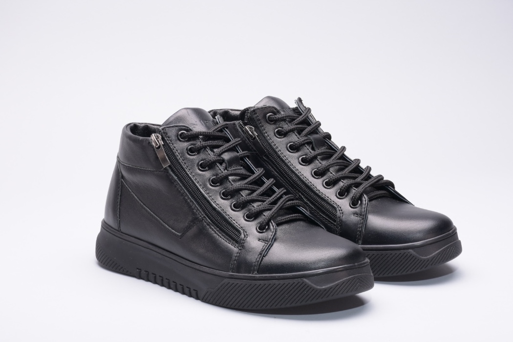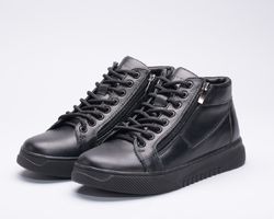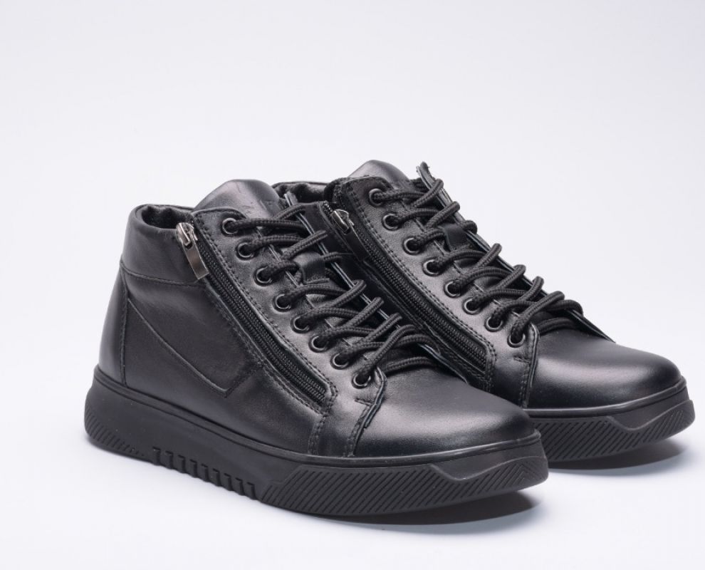 Ця пара зимових черевиків виготовлена зі шкіри на зручній підошві, оснащена шнурками на підйомі для надійної фіксації та двома блискавками збоку.