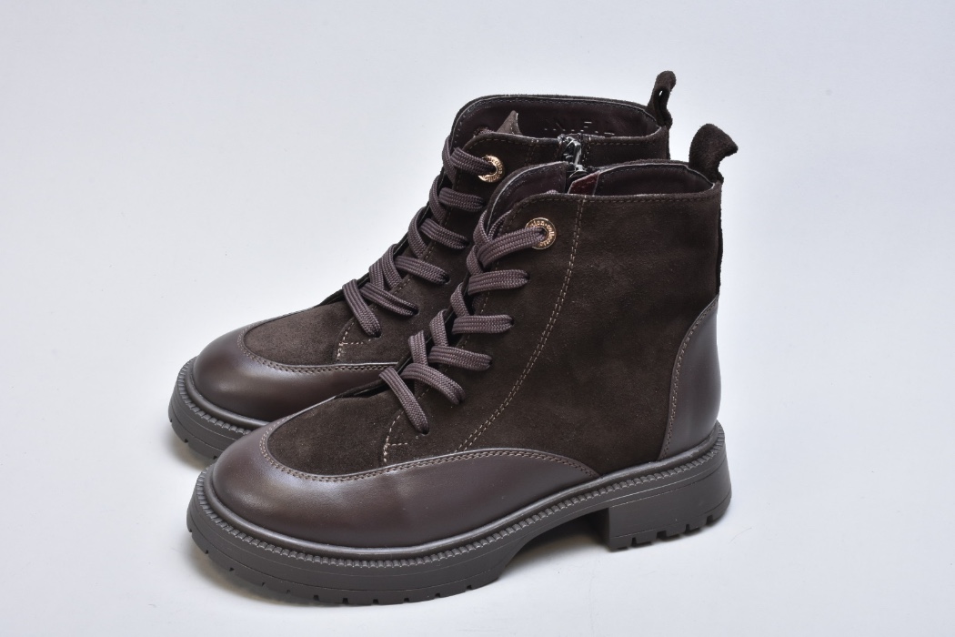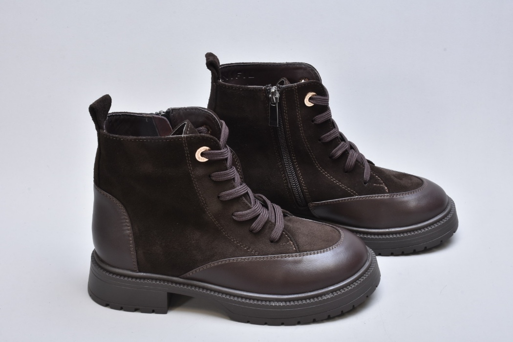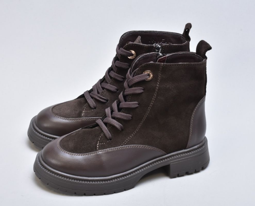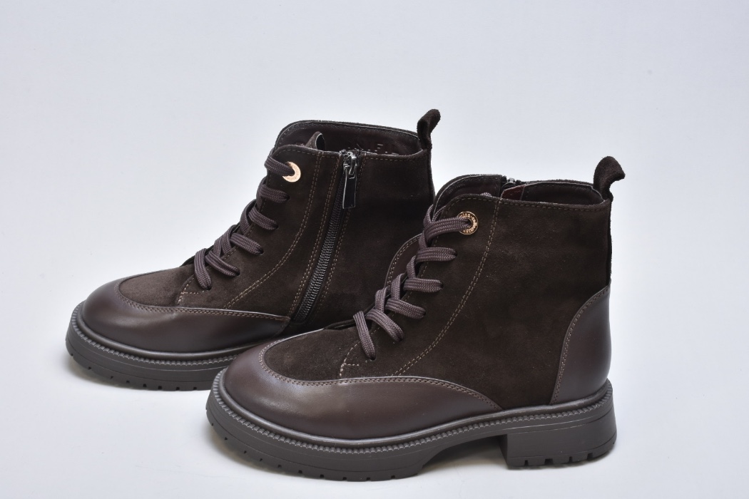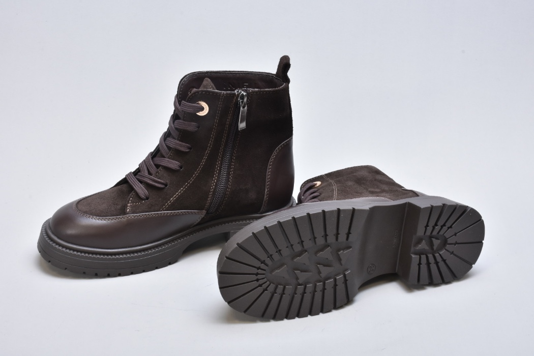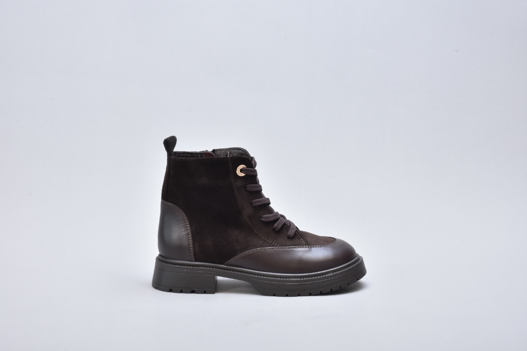 Шнурівка виконана з міцних плоских шнурків і дозволяє точно регулювати посадку. Металеві люверси у теплому золотистому відтінку створюють ювелірний акцент, ніби декор із колекцій люксових брендів. Збоку розміщена блискавка — непомітна, акуратна, забезпечує комфорт під час взування та зняття, не порушуючи ідеально налаштованої шнурівки.