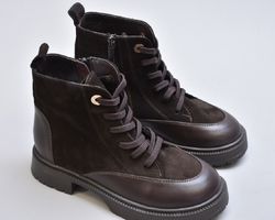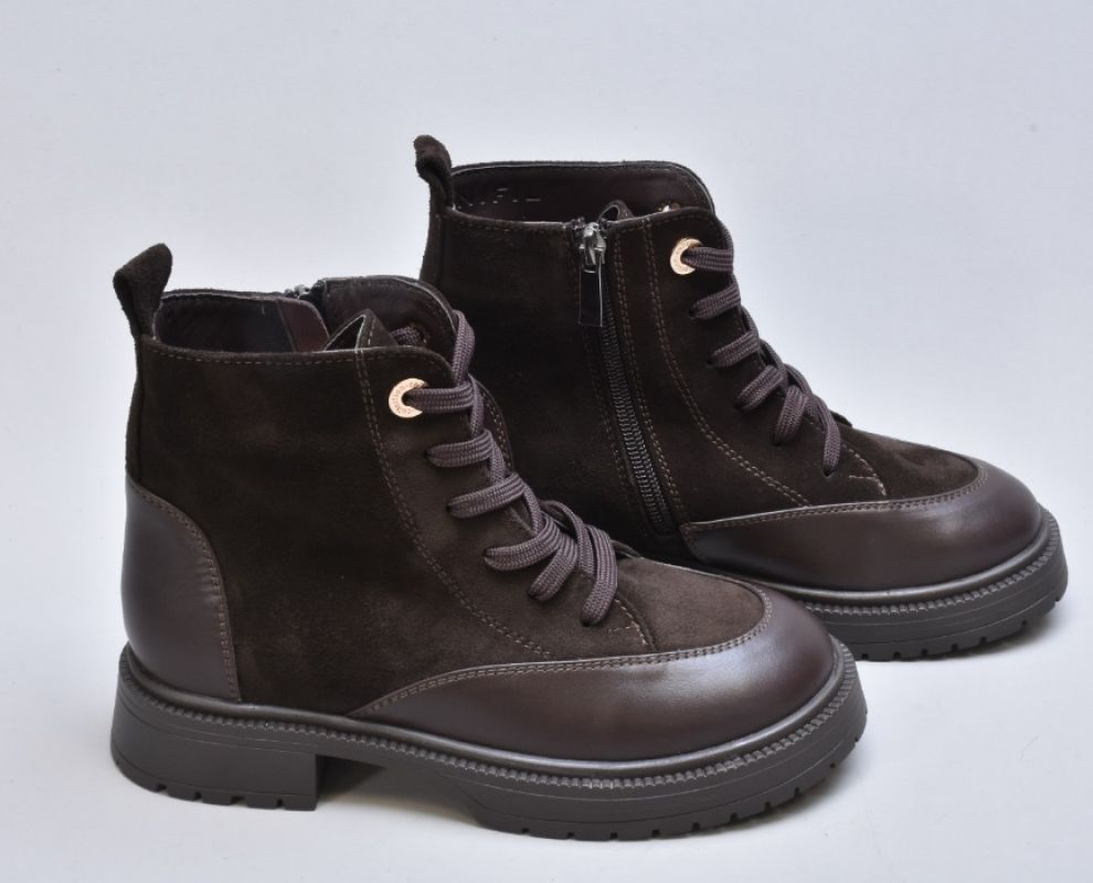 Черевики inifil у шоколадному відтінку — це вишукана гармонія натуральної шкіри, преміальної замші та продуманого дизайнерського силуету. Створені з увагою до кожної деталі, вони поєднують у собі стриману розкіш та функціональність, властиву взуттю високої моди.