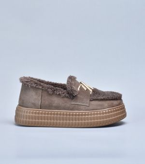 Черевики на платформі з натуральної замші відтінку мокко-мус декоровані хутром