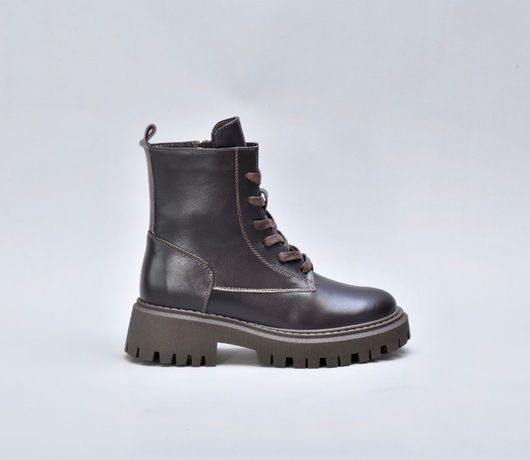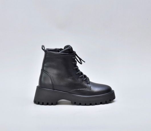 Черевики шкіряні чорного кольору зимові на шнурівці