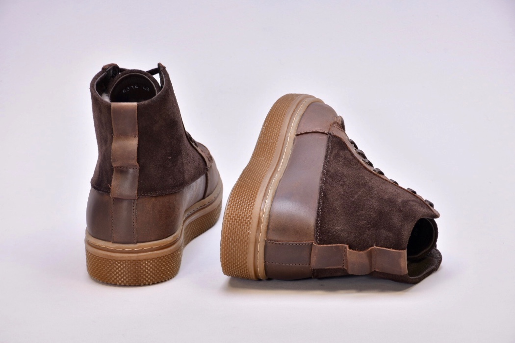 Черевики зверху на підйомі оснащені шнурівкою,збоку декоровані натуральною замшою