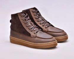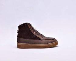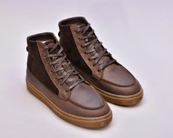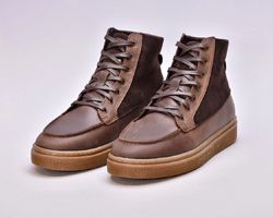 Нова зимова модель шкіряних чоловічих черевиків на шнурівці з якісної натуральної шкіри Crazy Horse коричневого кольору.