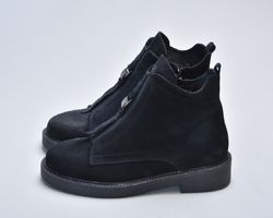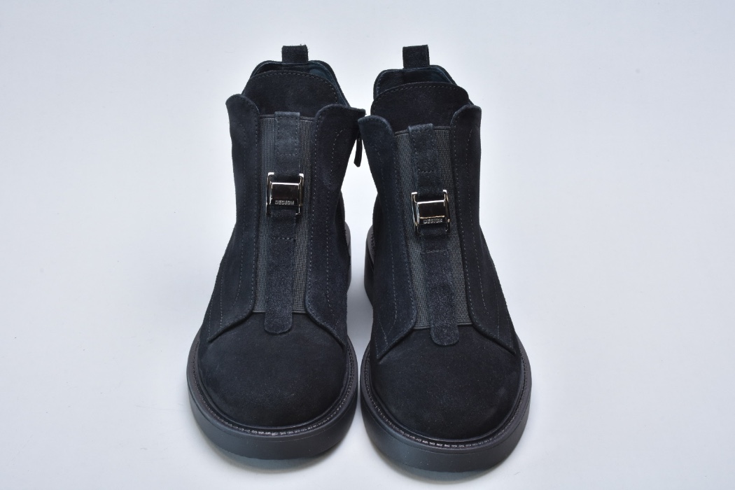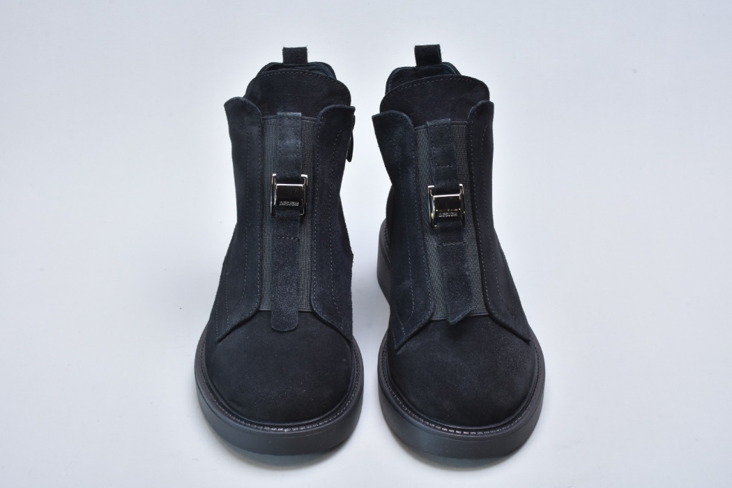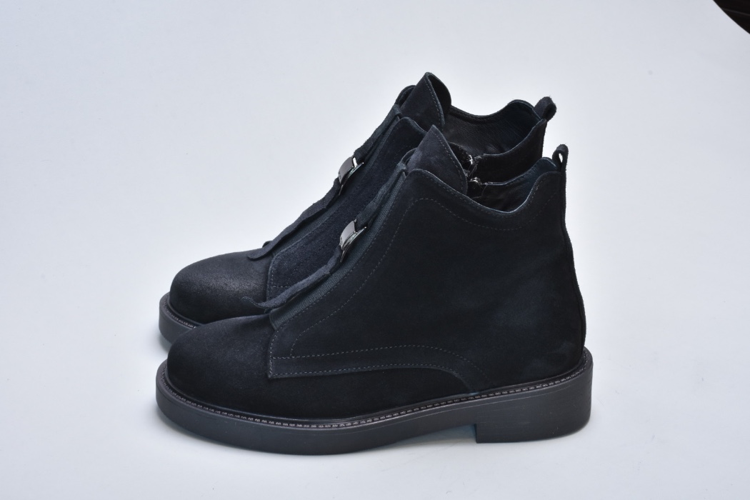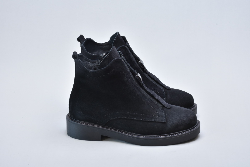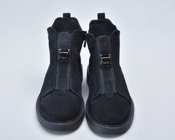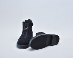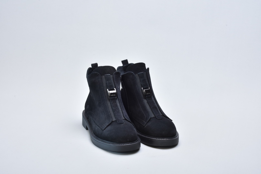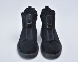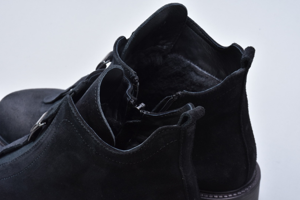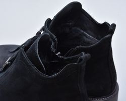 Виконані з натуральної італійської замші глибокого чорного кольору, вони мають м’яку, оксамитову текстуру, що надає образу стриманої розкоші.