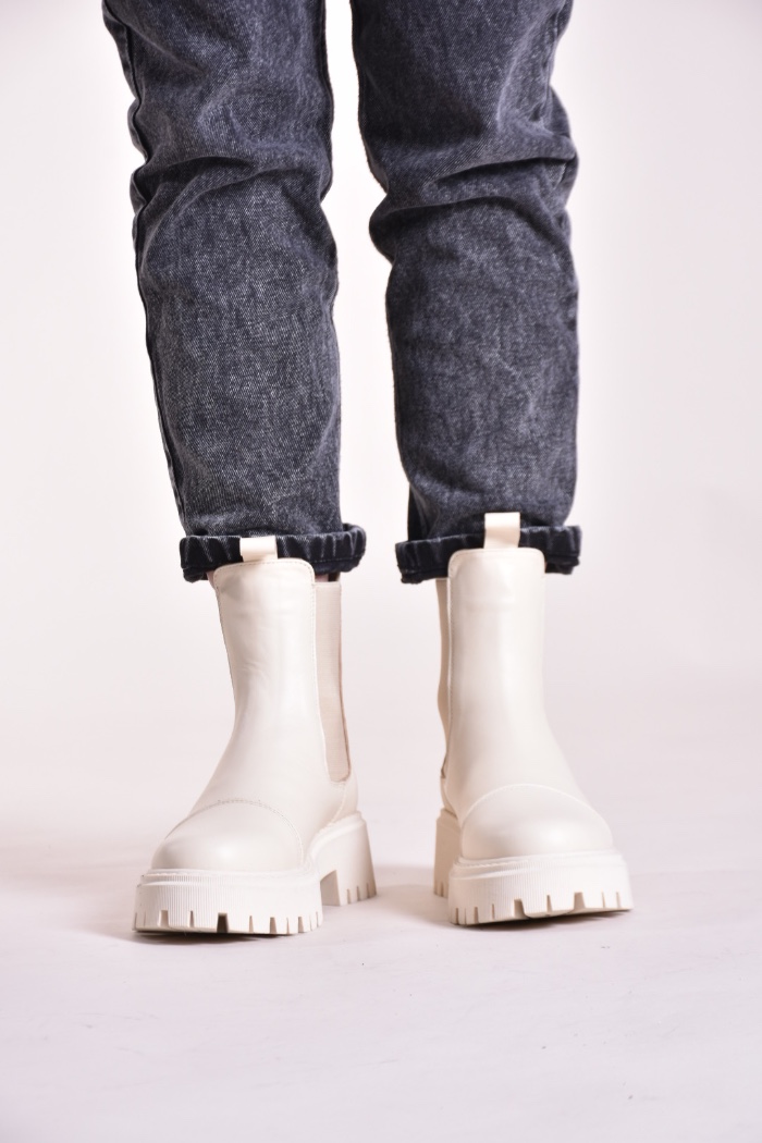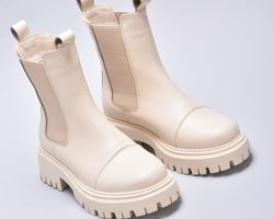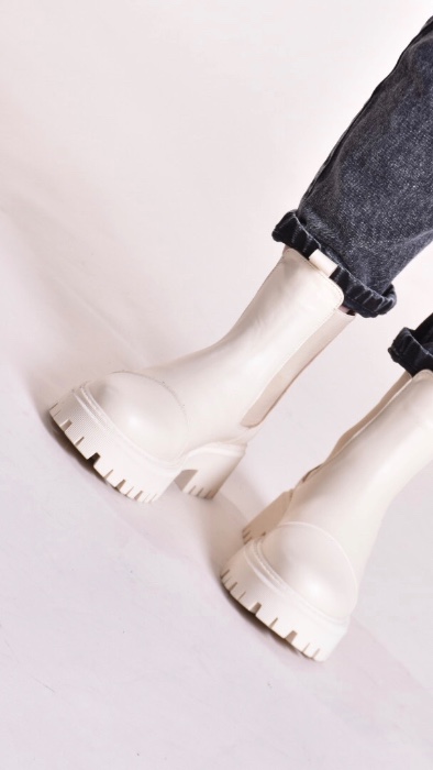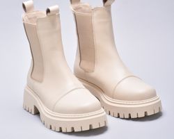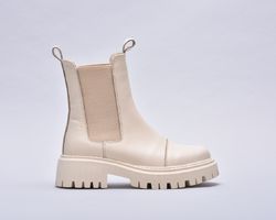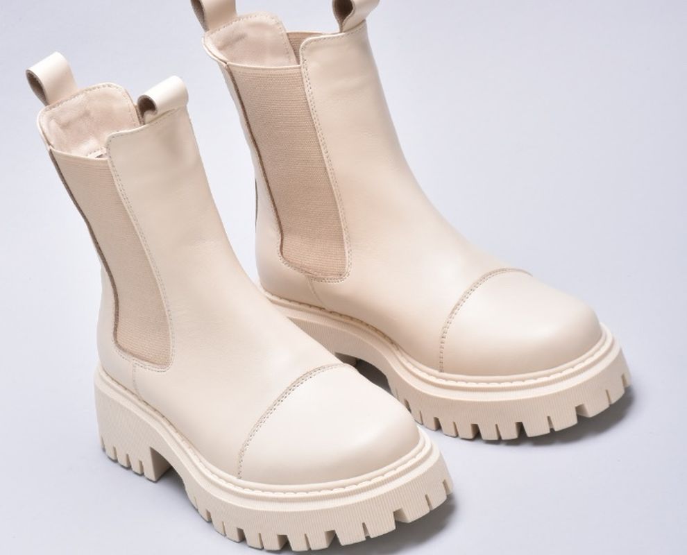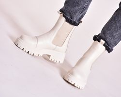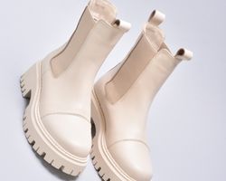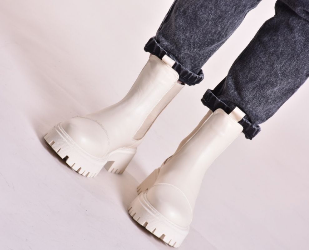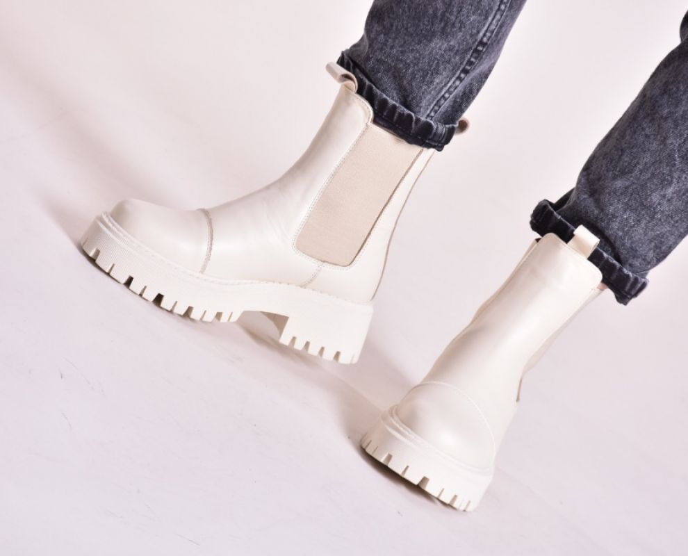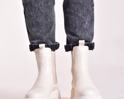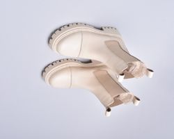 Зимові шкіряні черевики челсі кольору айворі мають дуже теплий утеплювач шерсть ,якісну преміальну шкіру та зручну підошву з поліреутану.
