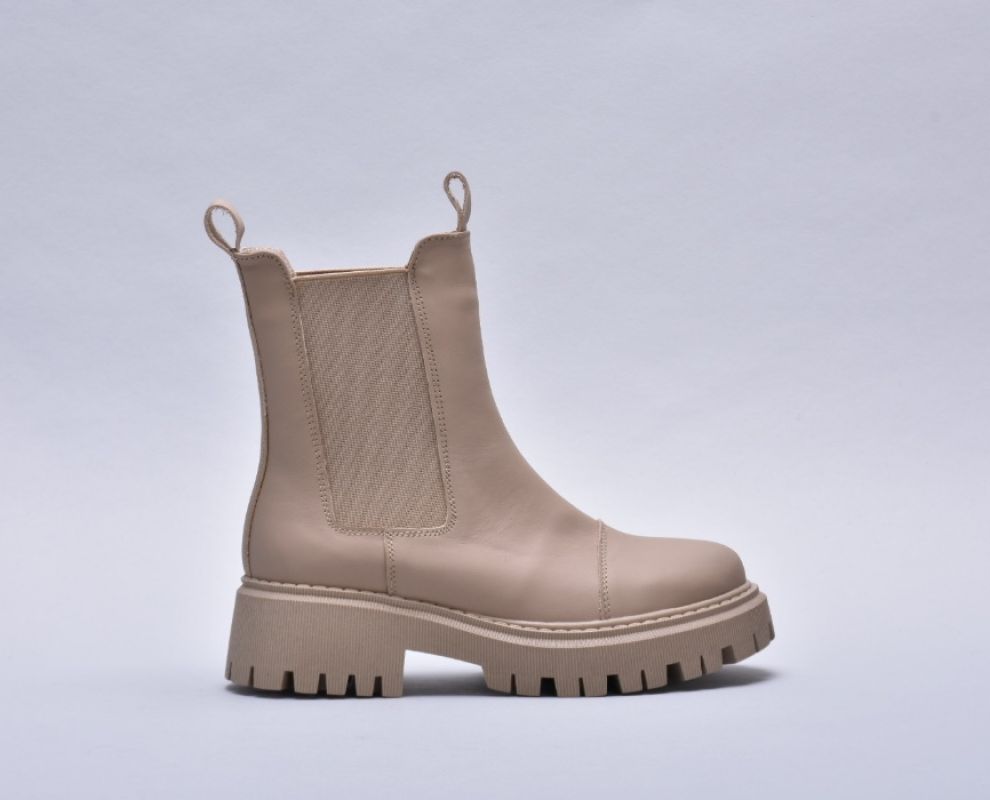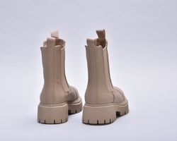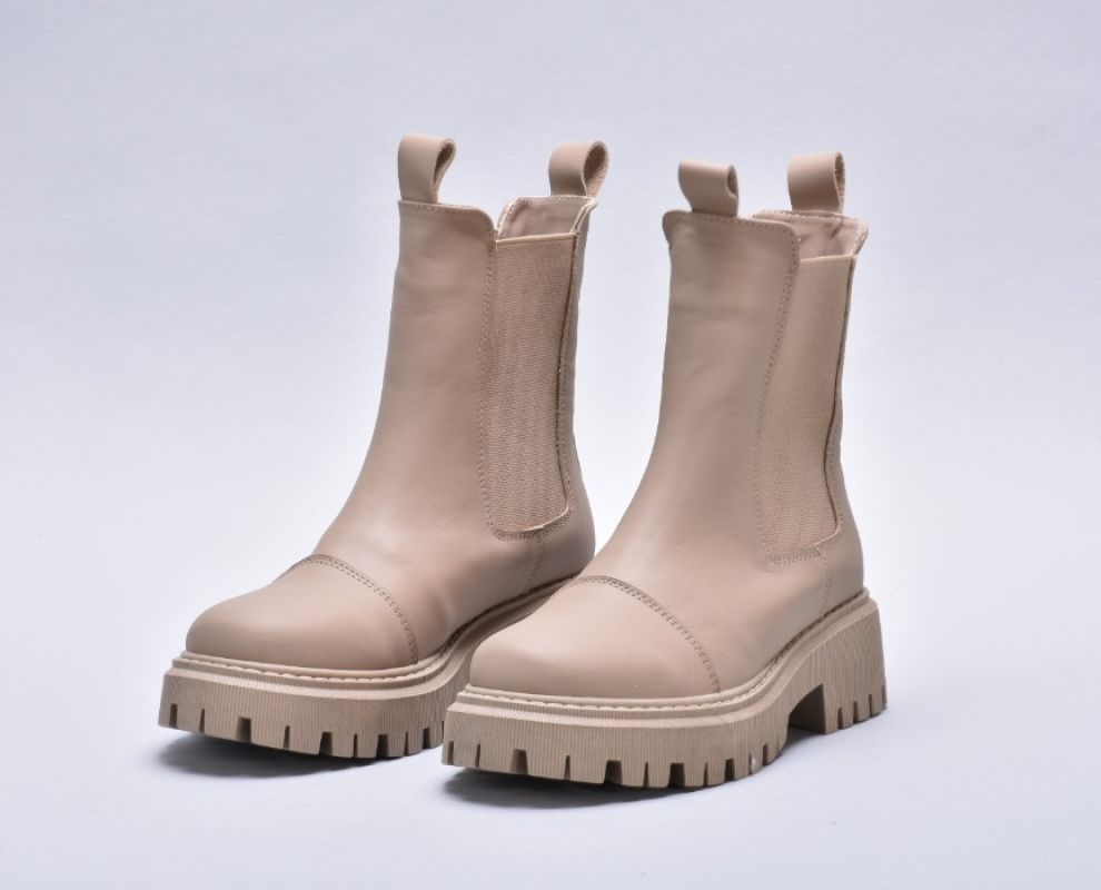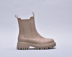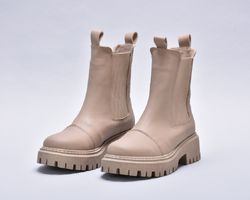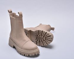Зимові шкіряні черевики челсі з матової бежевої шкіри