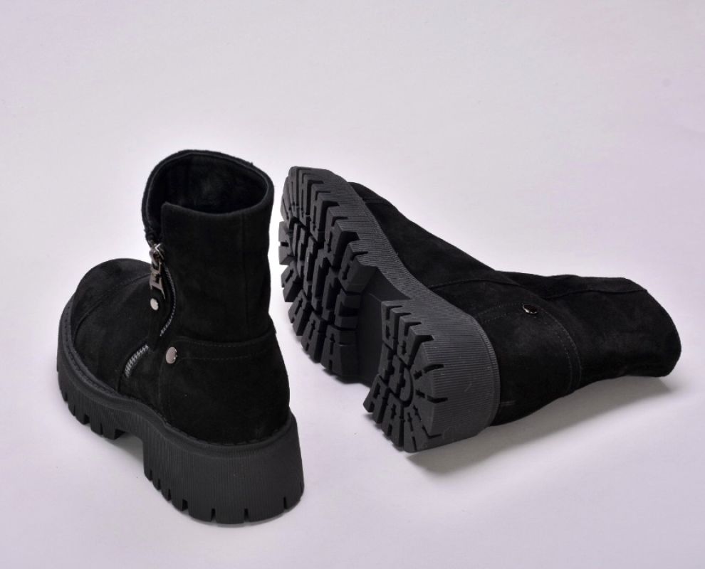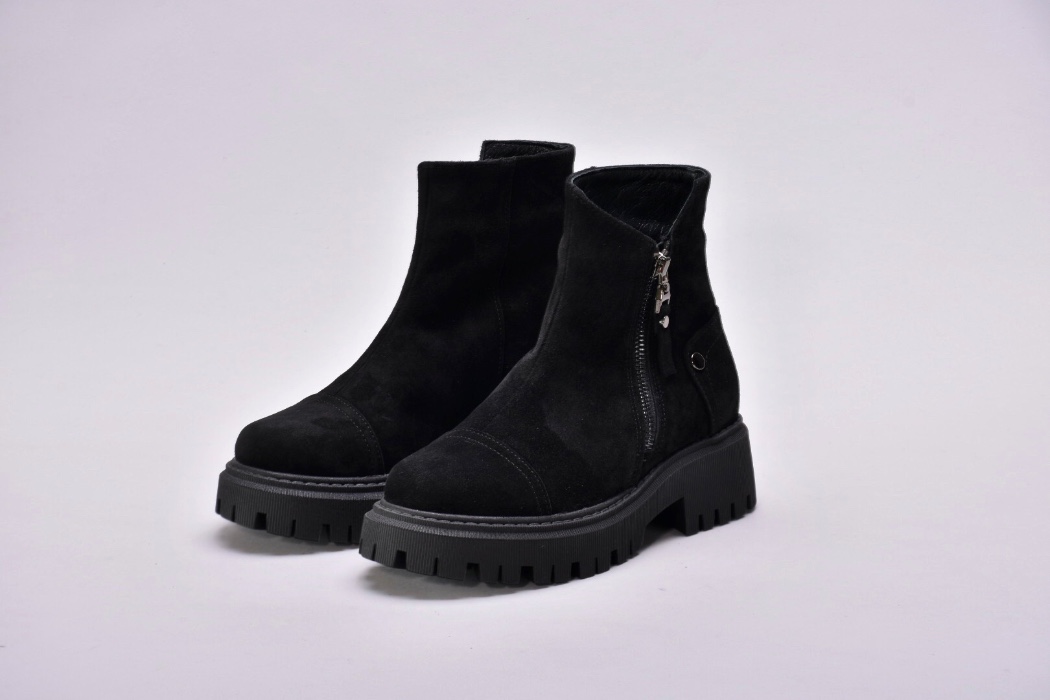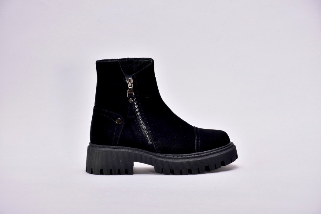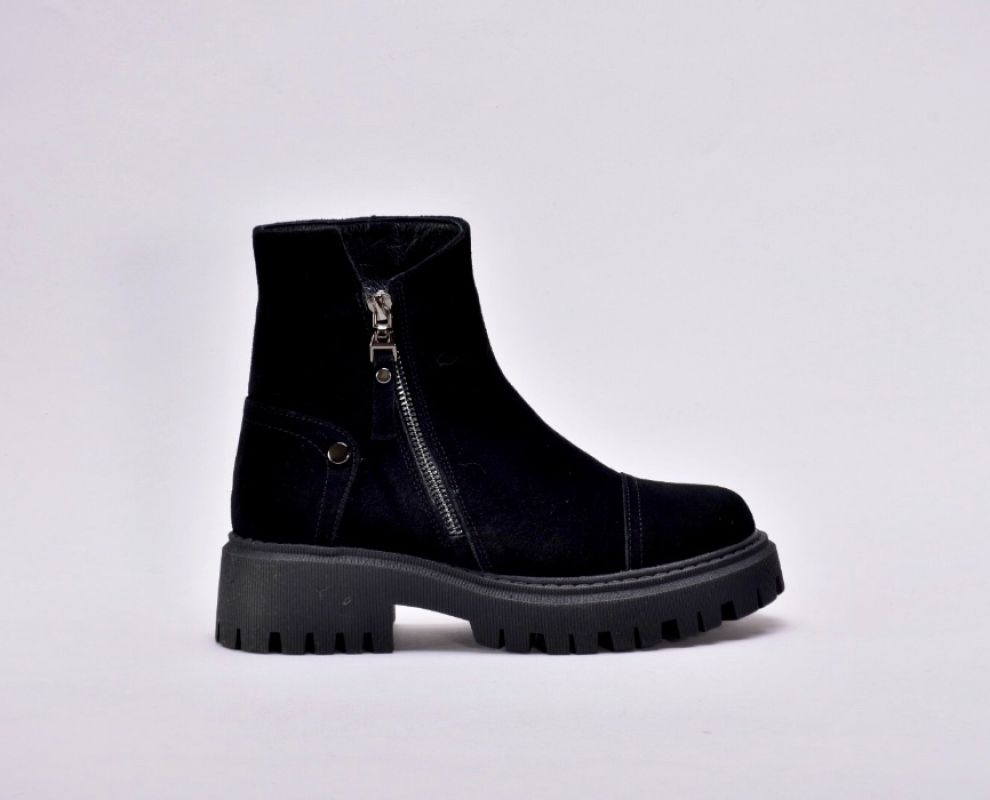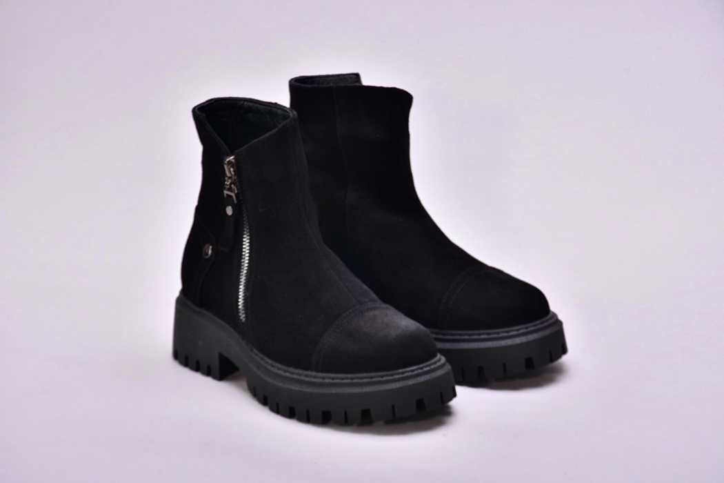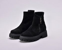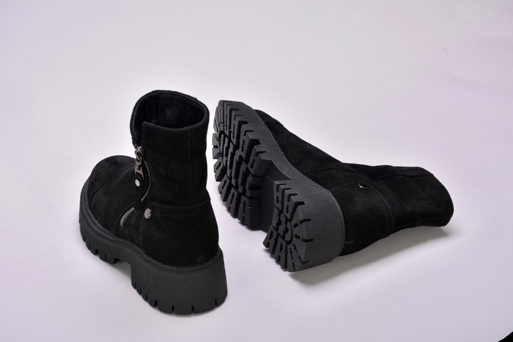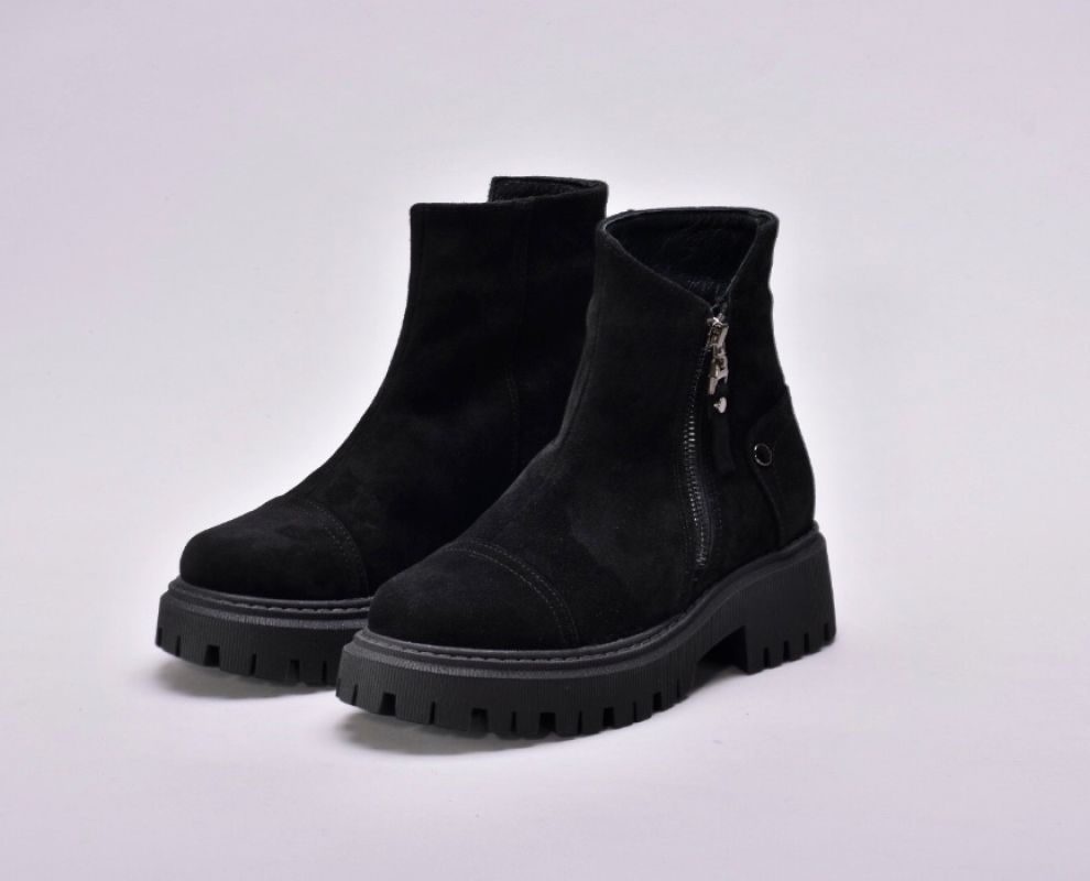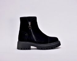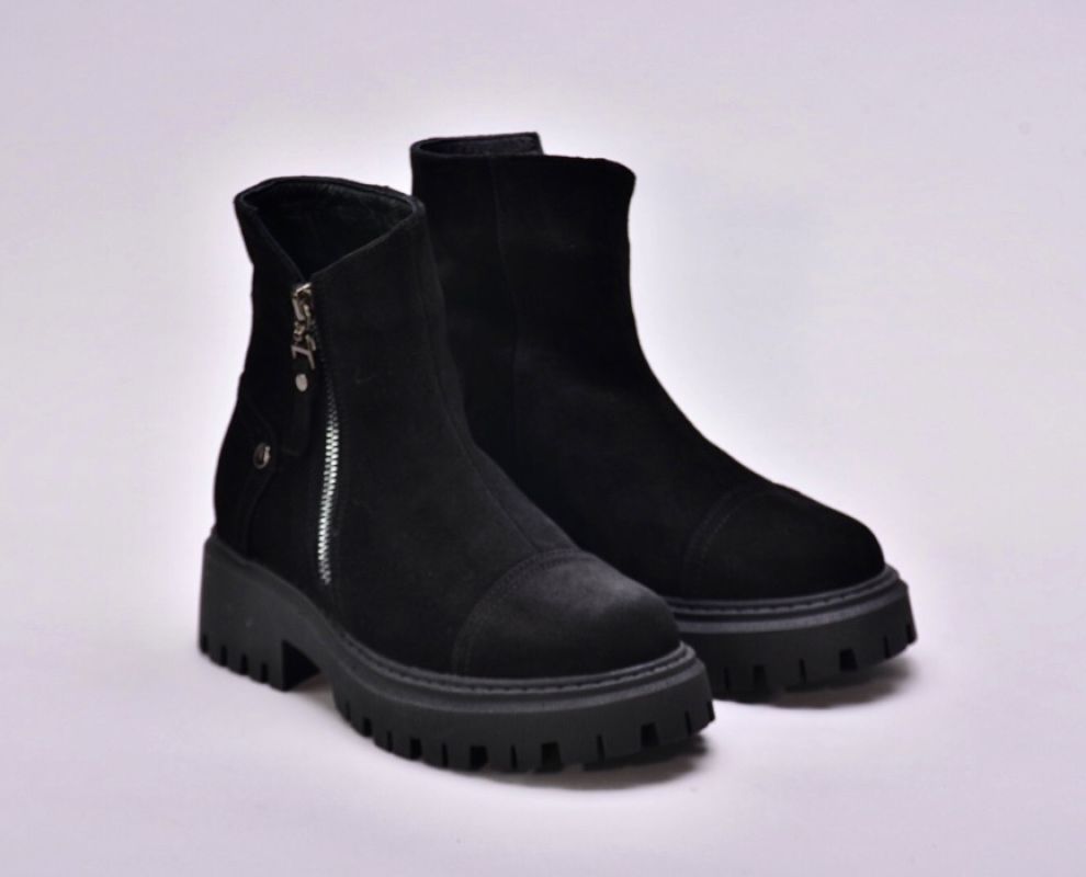 Черевики виготовлені з якісної натуральної замші чорного кольору , утеплені вовною , збоку оснащені блискавкою .